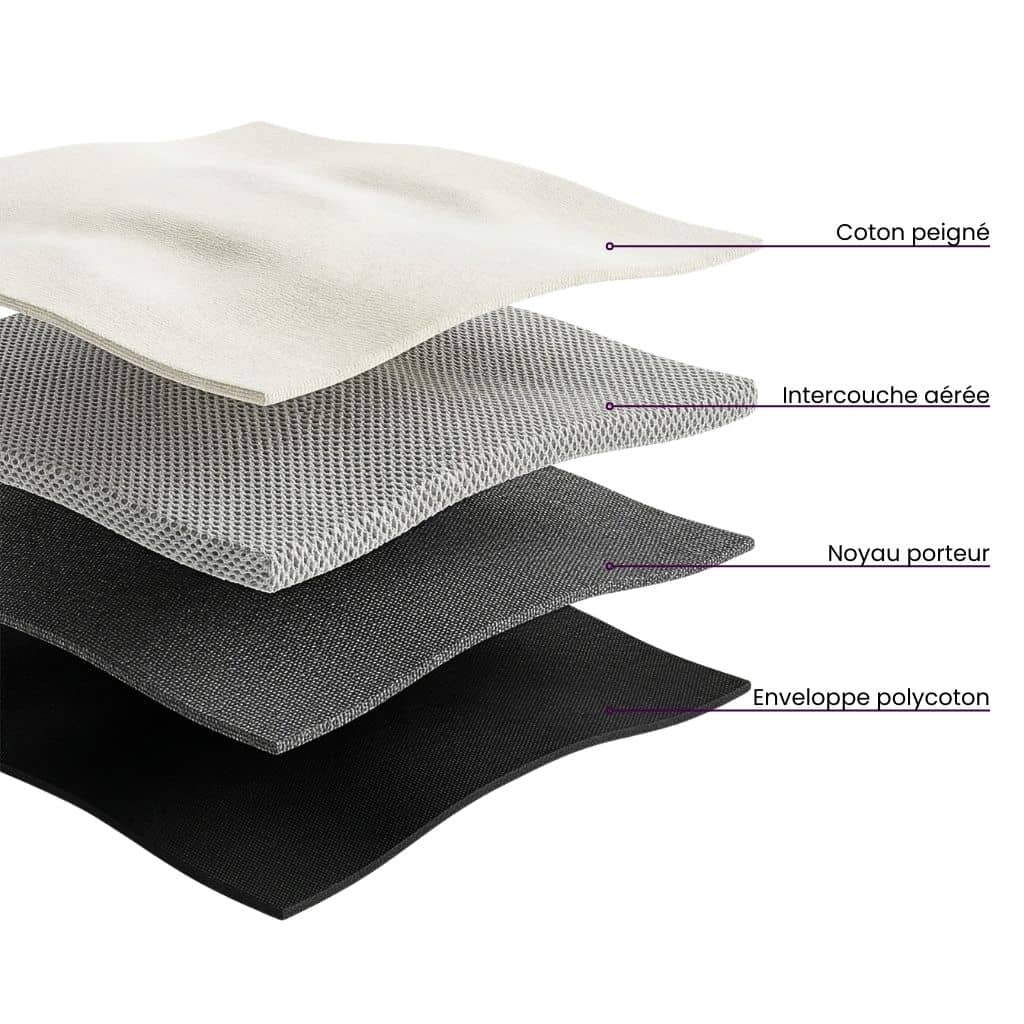 - Intérieur : 100 % coton hypoallergénique. Respirant et agréable, même sur ses jambes nues.