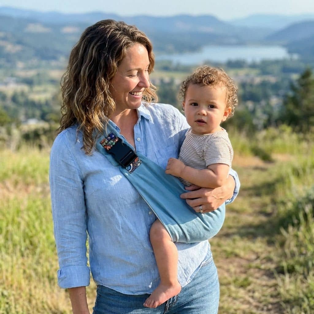 Contact immédiat pour l’apaiser. Vos deux mains restent libres pour cuisiner, ranger, ou gérer l’aîné.